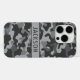Customize this gray camouflage iPhone 16 pro case with your name in a trendy modern CAP font in dark gray on light gray. It's masculine and perfect for your favorite military, hunting, country or outdoorsman!