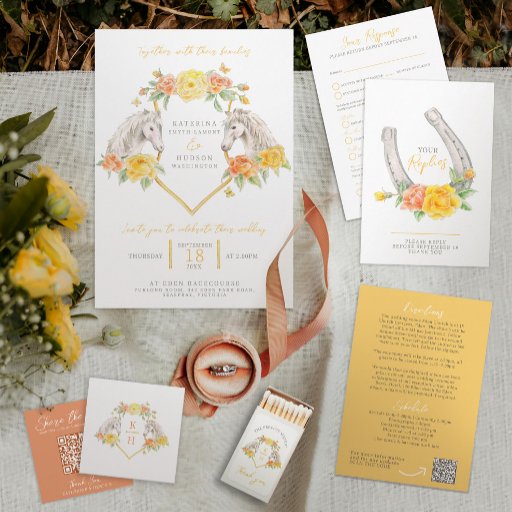 Gray horse heads with roses in shades of warm yellows, coral and muted greens wedding coasters. Personalize your own wedding details. Ideal for horse themed equestrian Wedding, derby day couples celebration, western, or racecourse wedding. © Original hand watercolor painting and design by Sarah Trett exclusively for www.mylittleedenweddings.com on Zazzle.
