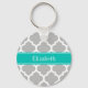 Gray White Moroccan #5 Teal Name Monogram Key Ring
