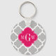 Gray Wht Moroccan #5 Raspberry 3 Initial Monogram Key Ring