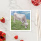 A beautiful photograph of a cow grazing on a meadow in the Alps printed on napkins.