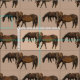 This animal fabric design features an abstract interpretation of grazing brown horses in a repeating pattern set on a beige tan background. Easily customise the background colour to suit your special project.