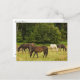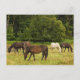 This postcard features brown and white horses grazing in the high grass of a golden field on a warm summer day.