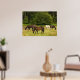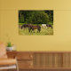 This poster features brown and white horses grazing in the high grass of a golden field on a warm summer day.