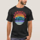 I give wanted to give this a 4 instead of a 5 because these Basic DARK T0shirts run unexpectedly SLIM or Narrow. Which is great if you do not have a potbelly, but I have a paunch. It isn't the shirt's fault that I've got a beer belly. The design and shirt itself is a quality cotton shirt. The color is more of a deep purple, but still a very pretty color. The Basic DARK T-shirts run a bit SLIMMER than the Basic Ts. The neck is a fraction narrower (or seems to be narrower) also. I'm a paunchy middle-aged woman and my neck is 12 inches (31cm) thick and the neckline fell about the same as in the photo of the man, and I had the desire to tug it a bit. So if you're a thick necked man or like loose shirts, be aware these are slimmer shirts. Once I get rid of my lockdown paunch it'll look great. The shirt washed well in cold water with no apparent bleeding. We don't have a dryer, so it hung dry. Did not shrink. Love the colors and the design. The design looks smaller on my shirt than it does on the model on-line. But still, it looks good on the shirt. The printing looks as it does on the model, just the size seems fractionally smaller. Washed garment in cold water, hung dry and design appeared unaffected.
