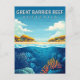 Dive into the breathtaking brilliance of the world's largest living structure with this Great Barrier Reef Travel Postcard. This vintage-style illustration captures the vibrant kaleidoscope of marine life, from colorful coral gardens to tropical fish swimming through crystal-clear azure waters.