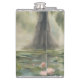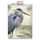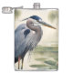 This image is a painterly representation of a Great Blue Heron wading in a pond full of water lilies surrounded by willow trees. Great Blue Heron is an AI generated wildlife image of one of many species of wading birds.