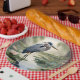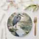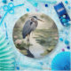 This image is a painterly representation of a Great Blue Heron wading in a pond full of water lilies surrounded by willow trees. Great Blue Heron is an AI generated wildlife image of one of many species of wading birds.
