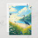 Great Blue Heron Sunset Wildflowers Landscape Postcard