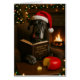 Humorous Christmas card featuring a Great Dane reading 'The Cheese Tax at Home Regulations 2025' whilst trying to resist the urge to eat the cheese that someone's left on the table right in front of its nose!