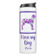 Great Dane pet dog silhouette purple, pink, yellow and blue digital abstract pattern. This thermal tumbler is sure to put a smile on any dog lovers face. Plus, it's eco-friendly, so she can keep it for years to come. Change ‘I love my dog’/ ‘Name’ with any text you like on both sides of the bottle.