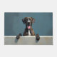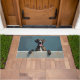 The cool steel blue background adds a modern and sophisticated touch, making it perfect for stylish entryways. Designed with extra space at the top and bottom, it allows easy personalization with names, welcome messages, or custom text—ideal for unique dog-themed doormats and thoughtful gifts.