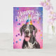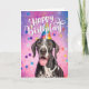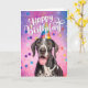 This good dog is ready to celebrate! This fun birthday card features a photo of a black and white great dane wearing a party hat. The inside text can be changed to anything you like.