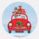 Great Dane Dog In Car With Santa Claus Classic Round Sticker