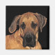 Great Danes are domestic dogs also known as the Gentle Giant or German Mastiff. The wonderful pet on this magnet is a gentle baby with faun coloured yellow, gold and brown fur, black nose, floppy ears and sweet, soulful eyes. He is one of the world's tallest dog breeds.
