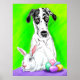 Great Dane Easter - Harlequin Great Dane is spooked by the Easter Bunny... Rabbits? BAHHH! The candy, the eggs, they're perfect... but the RABBITS?! Who needs 'em? Comical artwork for Easter or any day.