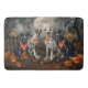 Unleash the spooky spirit with this eerie Halloween design featuring a pack of dogs under a dark, moonlit sky, surrounded by flying bats and glowing pumpkins. Perfect for those who love a touch of frightful fun with their furry friends!