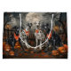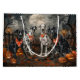 Unleash the spooky spirit with this eerie Halloween design featuring a pack of dogs under a dark, moonlit sky, surrounded by flying bats and glowing pumpkins. Perfect for those who love a touch of frightful fun with their furry friends!