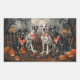 Unleash the spooky spirit with this eerie Halloween design featuring a pack of dogs under a dark, moonlit sky, surrounded by flying bats and glowing pumpkins. Perfect for those who love a touch of frightful fun with their furry friends!