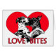 Giving Love Bites or making a statement as to the condition of Love? Either way, these pups are sure to bring a smile to many faces. Featuring a harlequin and a merle great dane doing some puppy luvin.