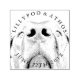 Stamp with dog illustration in a etched style. Blue Ink tone, best for whatever you try to announce