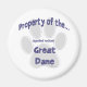 Every good dog owner knows they are the property of their dog. Great Dane owners will wear: Property of my (spoiled rotten) Great Dane with pride on a t-shirt, button, mug, magnet, keychain and more.