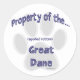 Every good dog owner knows they are the property of their dog. Great Dane owners will wear: Property of my (spoiled rotten) Great Dane with pride on a t-shirt, button, mug, magnet, keychain and more.