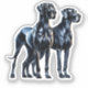 A stylised illustration of two majestic Great Danes standing side by side, showcasing their sleek, muscular bodies and elegant features. The dogs are black with smooth, glossy coats, accentuated by dramatic shadows and highlights to emphasise their strong physiques with a subtle watercolor effect adding an artistic touch.
