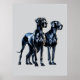 A stylised illustration of two majestic Great Danes standing side by side, showcasing their sleek, muscular bodies and elegant features. The dogs are black with smooth, glossy coats, accentuated by dramatic shadows and highlights to emphasise their strong physiques with a subtle watercolor effect adding an artistic touch.