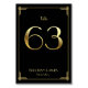 Great Gatsby Art Deco wedding table number cards with golden number 63 and changeable text, where you can add your names and wedding date, printed on black background