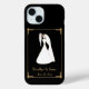 Black and gold orange Great Gatsby Art Deco style wedding iPhone case with changeable text