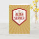 Be proud of your great granddaughter for she is now ready to serve God and the Catholic Church as an altar server. Send her your congratulations by giving her this card that has a starburst and shield on the front.
