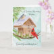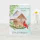 This hand-painted watercolor features a charming birdhouse adorned with a Happy Birthday banner, as a tufted titmouse and a cardinal stop by on a crisp January winter day. Soft seasonal details and gentle colors create a warm, thoughtful scene, making it a lovely birthday piece for great granddaughter who celebrates in January.
