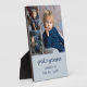A stylish photo gift for your great grandma. This easel plaque is lettered with "great grandma" in whimsical typography linked with a cute love heart and you can personalise with your name and message, such as I love you. The photo template is set up for you to add 3 of your favourite photos which are displayed in vertical portrait format. If you have any trouble with the placement of your pictures, try cropping to portrait before uploading. An attractive photo gift that any great grandmother will love and perfect for Mother's Day, birthday or any occasion throughout the year. The design has a colour palette of grey and blue which you can easily change if you click "customise further".