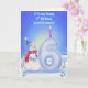 This whimsical winter illustration is perfect for celebrating your great grandson's sixth birthday designed to be fully winter with colors and details. A cheerful snowman stands proudly beside the snowy “6” he has just built, admiring his handiwork with a joyful expression. Snowballs are scattered around the base, adding playful movement, while soft winter flowers bring a gentle seasonal touch. The cozy palette and charming details create a magical winter atmosphere kids adore.