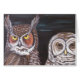 My original acylic painting was of two different owls seen near the same location but different times. The Great Horned is one of the largest owls, deserving of his name. Cornelia