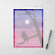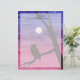 Watercolor and Pen & Ink of a Great Horned Owl silhouetted against the starry winter night sky, perched on a bare tree under the full moon.