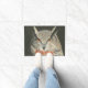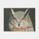 A colour pencil and ink drawing of a Great Horned Owl with piercing orange eyes adorns this door mat. Customise by adding or changing text to suit yourself.