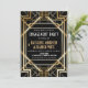 Black and gold 1920s art deco engagement party invitation. Check out our matching accessory cards.