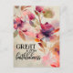 Postcard depicts a beautiful floral watercolor including elegant pink and lavender flowers and greenery on a light gold background. It features the beloved Christian Hymn, "Great is Thy Faithfulness." The back features the greeting along with the chorus of the Hymn, "Great is Thy faithfulness! Morning by morning new mercies I see. All I have needed thy hand hath provided; Great is Thy faithfulness, Lord, unto me!" They both can be customized to the details of your choice. _