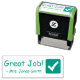 This inspirational rubber stamp design features the inspiring feedback message "Great Job!" and a personalised teacher's or educator's name. It also features a decorative check mark icon. It could be used by a teacher, educator, instructor, or tutor when grading student work, to indicate that a student has done an exceptional job.