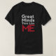 A dark men's shirt featuring the funny phrase "Great Minds Think Like ME"