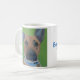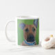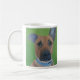 Great painted Black Mouth Cur dog portrait mug with bright green background. Love those funny ears.