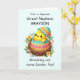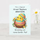 Celebrate Easter with your great nephew by making this card even more special with his name on the front! Featuring an adorable chick hatching from its shell, surrounded by colourful spring flowers, the design is full of life and perfect for the occasion. The soft pastel teal background creates a joyful vibe, while personalising the front with his name adds a unique and memorable touch. Inside, a heartfelt message shares Easter wishes filled with love and happiness, creating a keepsake that he’ll cherish for years to come.