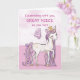 A sweet pink pony just like your great niece is prancing with the number four! Gold looking details are woven in her mane and tail. Perfect card to wish your great niece her 4th birthday!