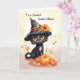 Wish your beloved great niece, a spook-tacular Halloween! This watercolor card stars a darling black cat, large-eyed and wearing a hat, surrounded by pumpkins and an orange daisy. Wish her a magical time!