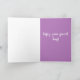 This card is great fun and good quality. I loved the humour inside and on the back. There is the opportunity to change the orientation of this card from landscape to portrait, which I did. It is relatively straightforward to amend the typeface to fit the new orientation. It was well packaged with no plastic. The printing on this card is excellent.