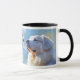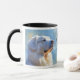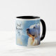 This colourful mug celebrates the majestic Great Pyrenees dog! Two sides of the mug have a beautiful portrait of a white Great Pyrenees Dog against a sunny bright blue background. At the centre is script that says Great Pyrenees Dog, but you may change it or even personalise it, if you wish. This mug will get noticed!