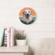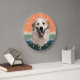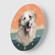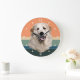 A portrait of a beautiful Great Pyrenees Dog is the feature on this clock. The image is placed on a retro, slightly distressed striped sunset background. White numbers and diamond shaped markers around the perimeter make the clock easy to read. Perfect for anyone who has lost their heart to a Pyrenees.