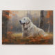 Great Pyrenees in Autumn Leaves Fall Inspire Jigsaw Puzzle